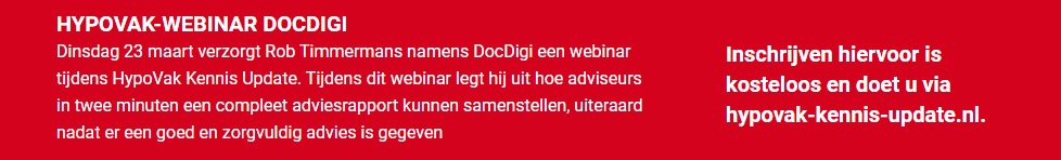 De vorige generatie adviessoftware doet alleen wat de gebruiker opdraagt. Bij DocDigi ligt dit anders: het adviespakket geeft de juiste routing aan. Ook berekent DocDigi (op basis van de ingevoerde gegevens) de optimale hypotheeksamenstelling en laat het zien hoe de fiscaliteit in elkaar zit. Uiteraard kan de adviseur dit naar eigen inzicht aanpassen. Deze zaken moeten adviseurs nu nog vaak zelf invoeren in het systeem. “Door de verplichte routing lijkt het aan de voorkant of de adviseur meer tijd kwijt is, omdat de adviseur wordt ‘verplicht’ om alle gespreksonderdelen te doorlopen. Hierdoor wordt aan de achterkant juist een enorme tijdswinst geboekt, vele malen groter dan de adviseur aan de voorkant extra kwijt is”, aldus Hafkamp.