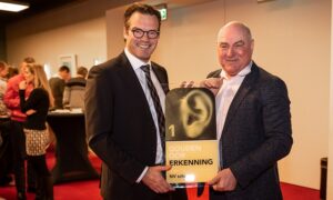 “NV Schadeverzekering Metaal en Technische Bedrijfstakken toont aan dat ze goed luistert naar haar klanten en echt wil weten wat er bij klanten leeft”, zei Van Kesteren vanmorgen bij de overhandiging van het Gouden Oor aan Peter Schrage, directeur NV Schadeverzekering Metaal en Technische Bedrijfstakken.