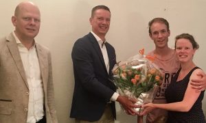 Op de foto staan van links naar rechts adviseur Jan Willem Smit van Finenzo Deventer, Paul Wessels van Tulp Hypotheken en de klanten Chiel en Marloes.