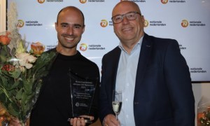 Op HypoVak ontving De Leeuw (links)vandaag de award uit handen van Hans Buursink, domein lead Hypotheken Nationale-Nederlanden. “De aanpak van Thomas de Leeuw zet aan tot nadenken. Welke elementen kun je zelf toepassen? Hoe kun je met een innovatieve aanpak het verschil maken voor jouw klanten? Dat is inspiratie!”